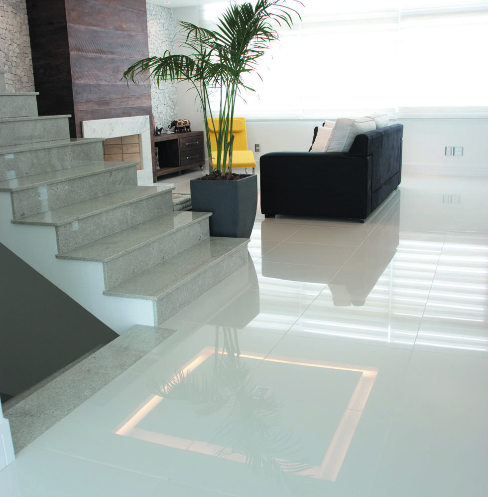 - Acetinado: com brilho suave, elegante e menos escorregadio que o polido.